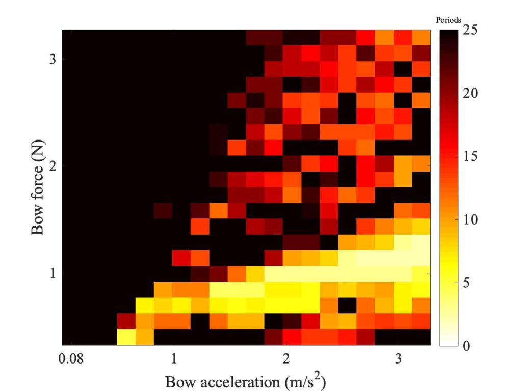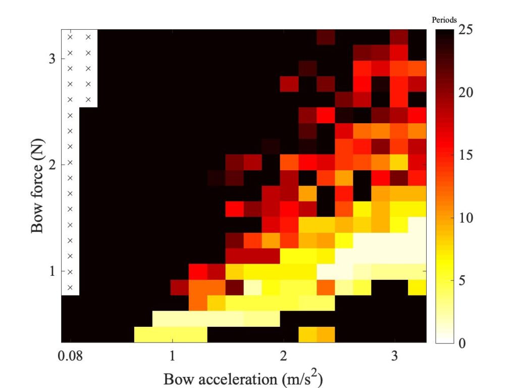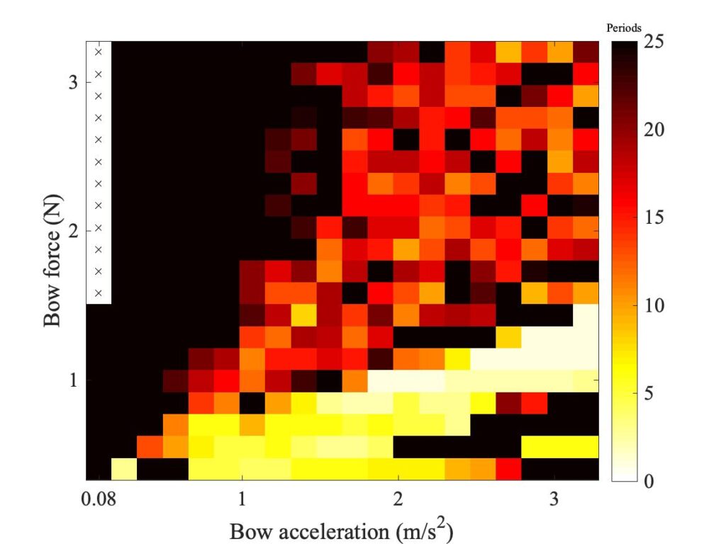 [1] R. Pitteroff and J. Woodhouse, “Mechanics of the contact area between a violin bow and a string. Part II: simulating the bowed string”; Acta Acustica united with Acustica, 84, 744—757 (1998).
