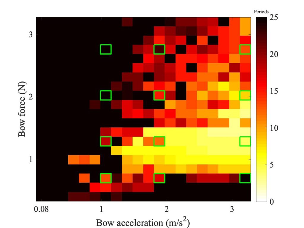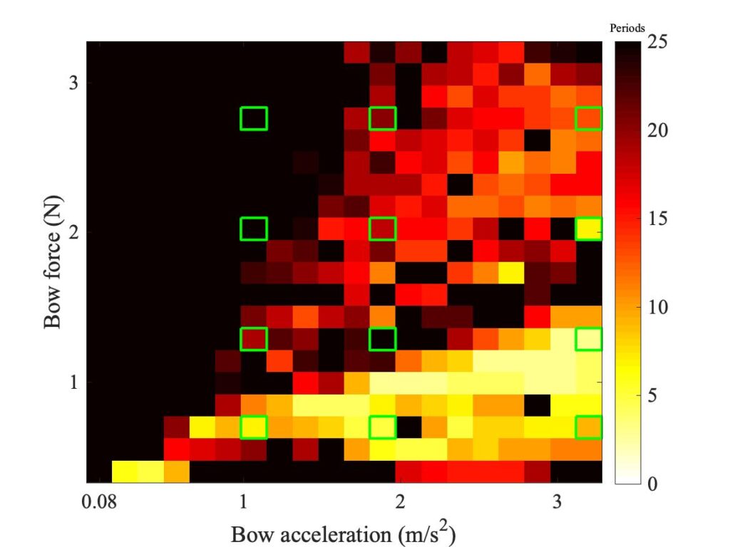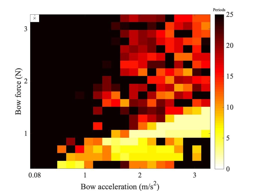 [2] R. Pitteroff and J. Woodhouse, “Mechanics of the contact area between a violin bow and a string. Part I: reflection and transmission behaviour”; Acta Acustica united with Acustica, 84, 543—562 (1998).